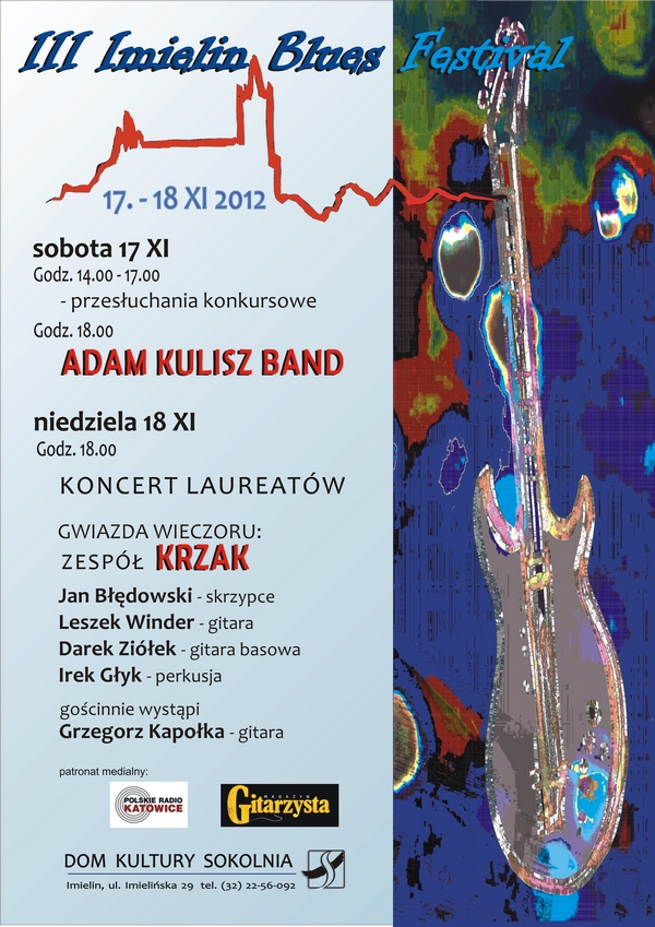 W tym roku również nie obędzie się bez występów gwiazd. Pierwszego dnia imprezy (sobota, 17.11) o godz. 18:00 w DK „Sokolnia” zagra ADAM KULISZ BAND, a w niedzielę (18.11), po ogłoszeniu wyników i występach laureatów festiwalu posłuchamy zespołu „KRZAK” – laureata tegorocznej nagrody Fryderyka (za najlepszy album bluesowy).