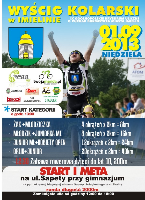 Wyścig IX Ogólnopolskie Kryterium Uliczne o Puchar Burmistrza Miasta Imielin organizowany jest przez Urząd Miasta Imielin, ul. Imielińska oraz UKS Gimnazjum, ul. Sapety, zgodnie z przepisami PZKol.
